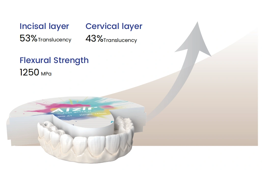 Aizir có phạm vi nhiệt độ thiêu kết cực rộng, mang lại hiệu ứng thẩm mỹ sinh học hoàn hảo ở các nhiệt độ khác nhau.